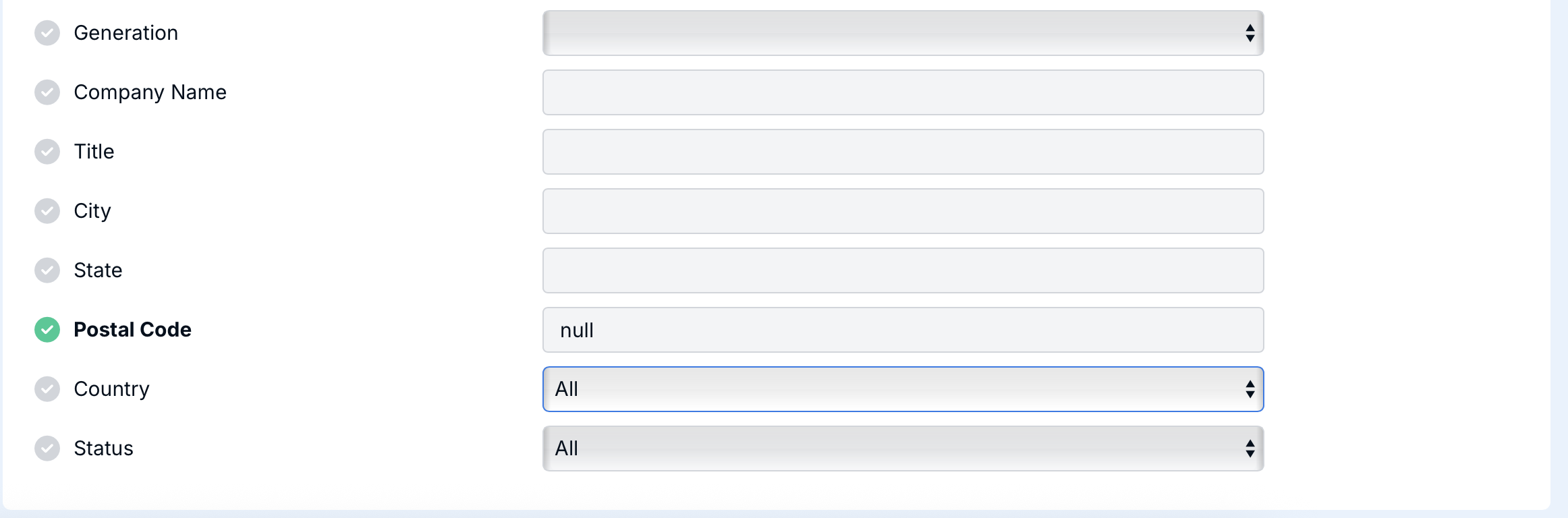 You can use the fields in this section to search for contacts who were registered through Web Forms, Magic Forms, Pop-ups, or SMS Keywords.