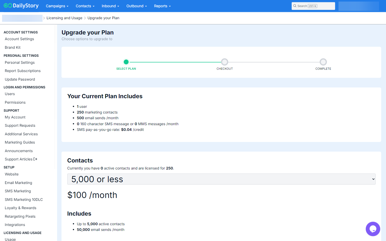 - Select the number of Marketing Contacts and the number of Text Messages you plan to send per-month: