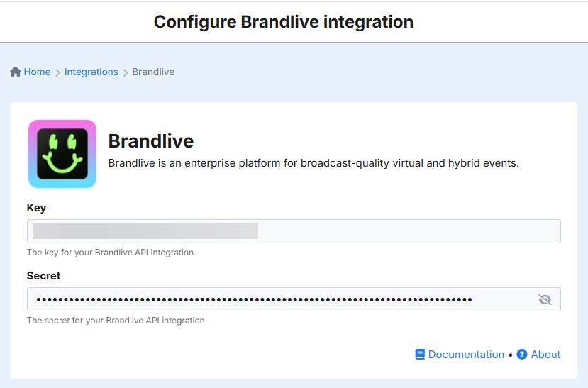 To enable Brandlive integration you will need to obtain an API key and API secret from Brandlive.