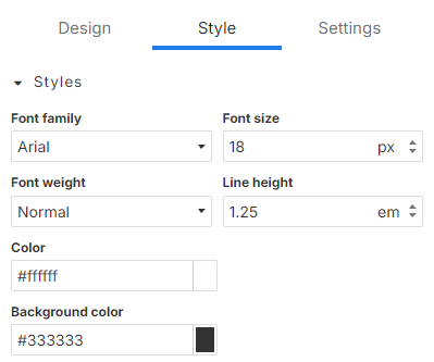 You may notice that the Style tab is still accessible when using the rich editor. The style tabs setting apply to everything in the editor. Whereas within the text you can select individual portions of content to change color, font size and more.