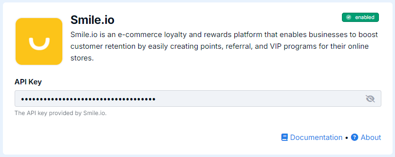 Navigate to Account Settings > Integrations, and select Smile.io. Enter the API Key obtained in Step 1, and click the "Save" button.