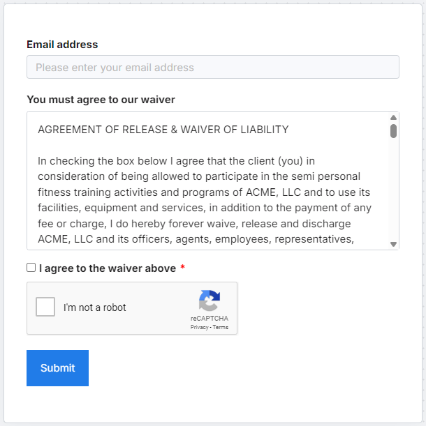 When a waiver consent is added to your form, consent must be given before the form may be submitted.