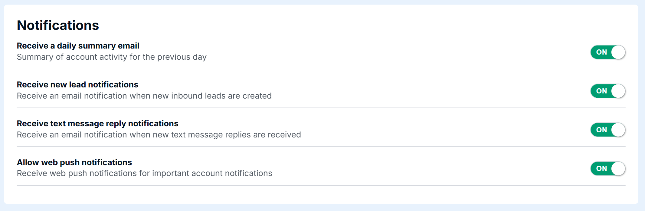 Note: New lead notifications are only sent when enabled within the campaign's settings.