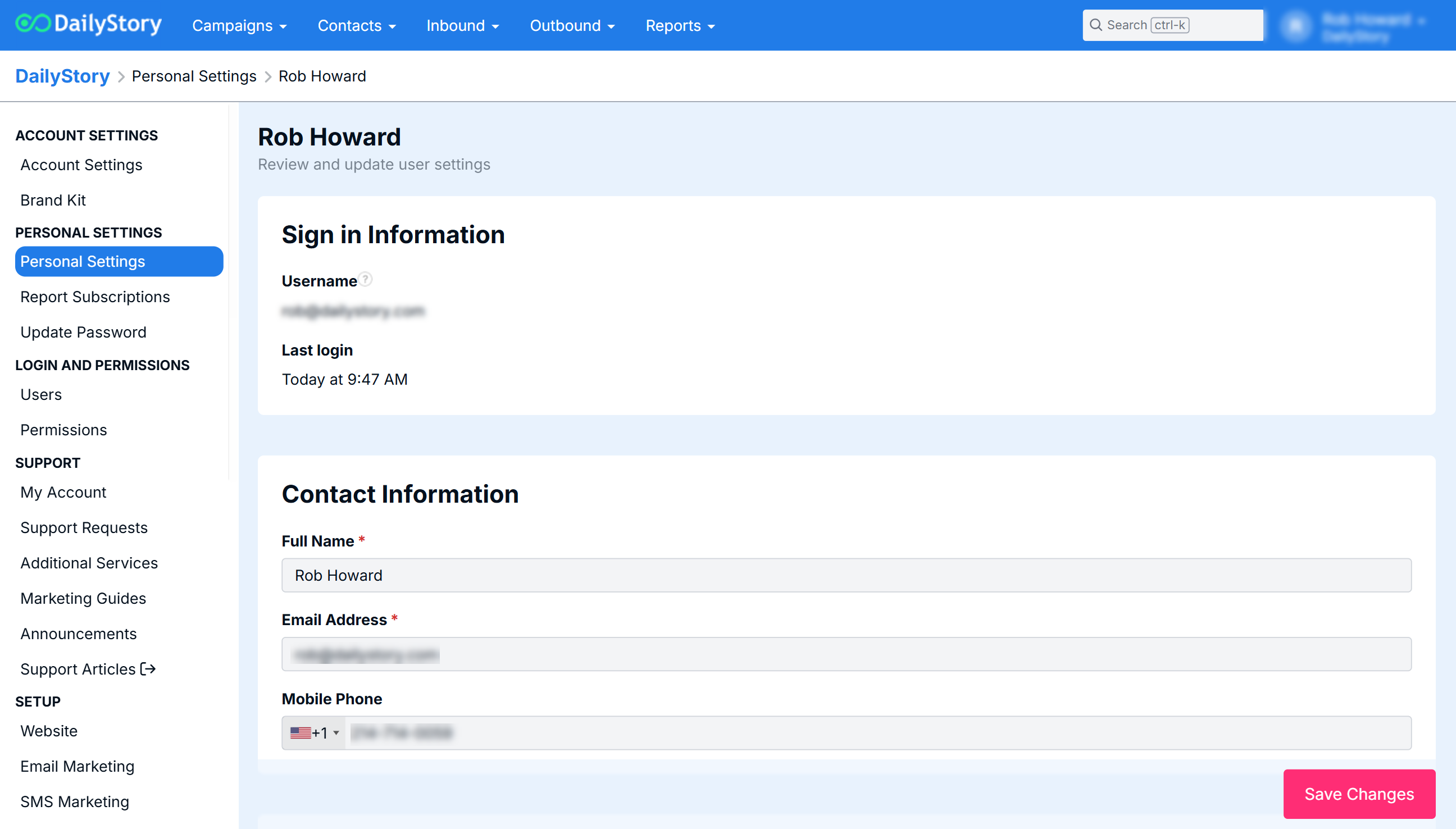 Personal Settings enable you to configure options related to your login account for DailyStory. This includes settings, such as email address, time zone, notifications and more.